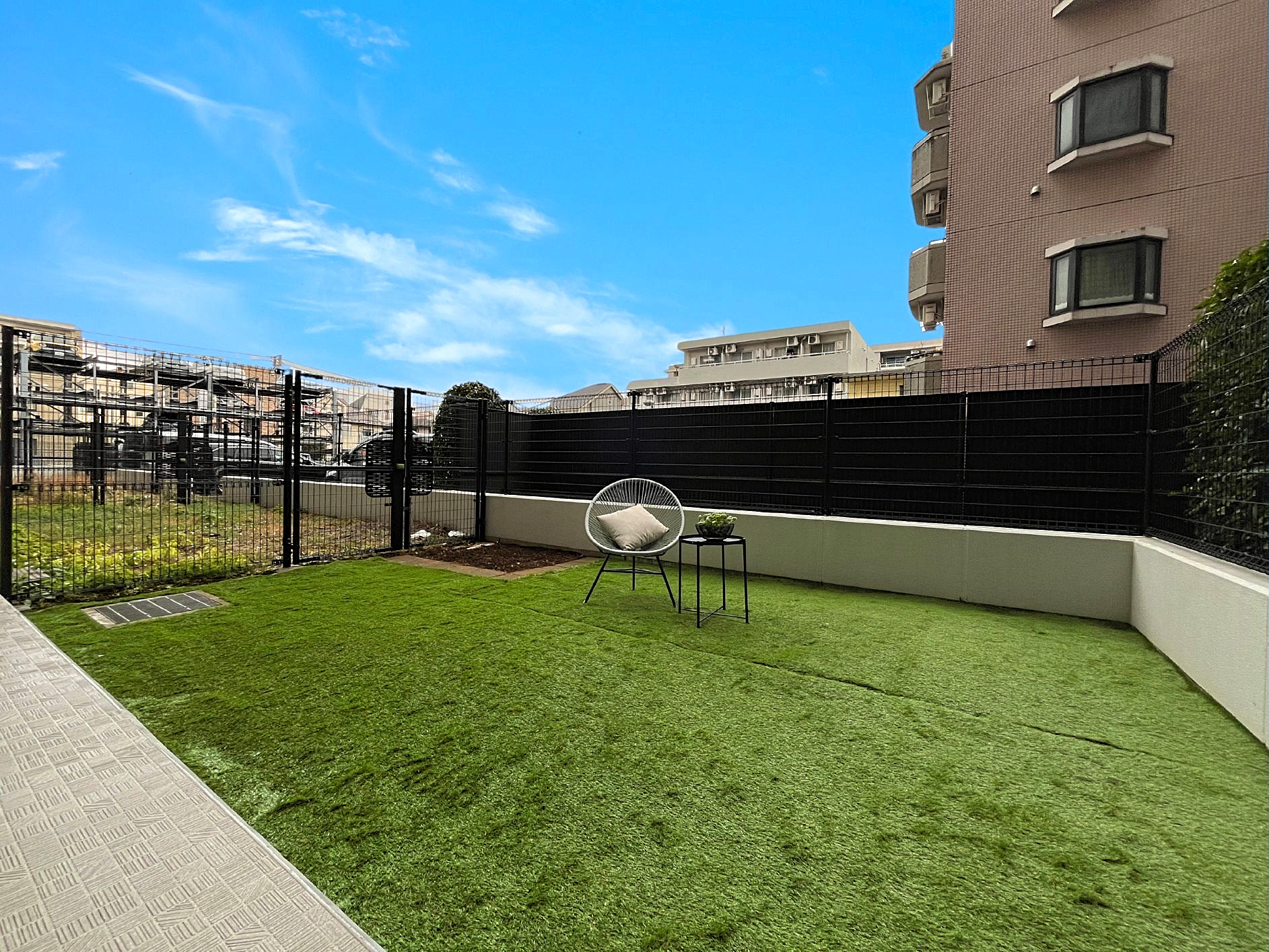 専用庭には人工芝を施工し、手入れがしやすく清潔な環境で快適にお過ごしいただけます。
