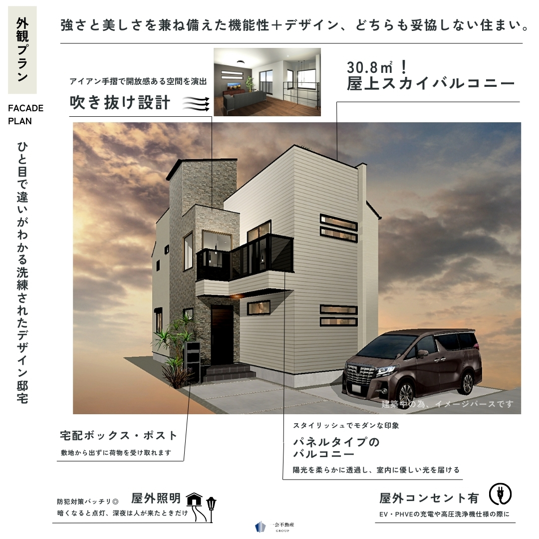 | 販売価格 | 5,298万円(税込) | 物件種別 | 新築戸建 | 状態 | 建築中 | ||||||||||||||||||||||||