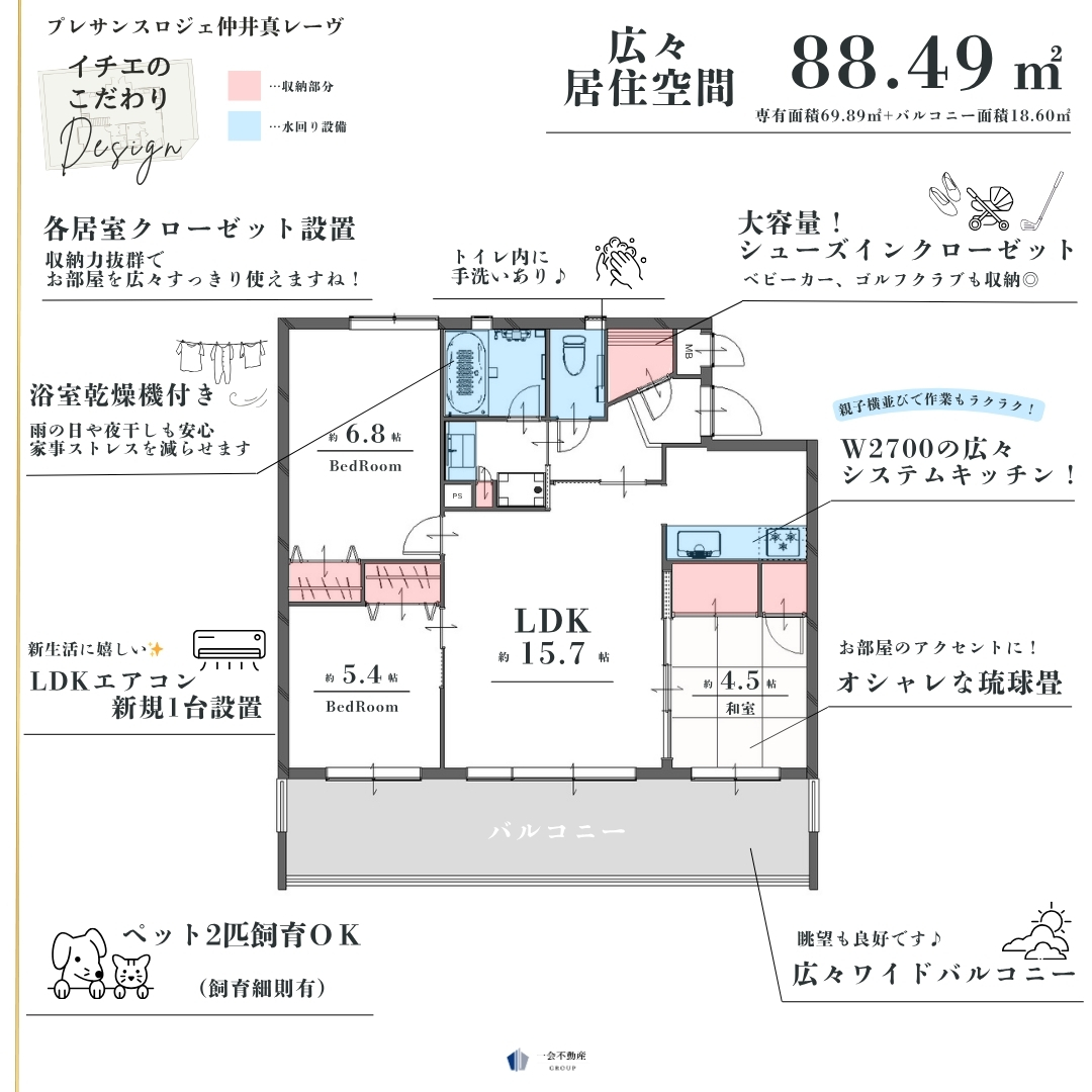 ペット可能, リノベーション システムキッチン 給湯, 洗髪洗面化粧台, 浴室乾燥機, 温水洗浄便座 エアコン W.INクローゼット CATV, BSアンテナ, 地デジ対応 オートロック, TVドアホン, 防犯カメラ 都市ガス, 公営水道, 排水下水 エレベータ, 宅配ボックス, 駐車場有, 駐輪場, バイク置き場, バルコニー, フローリング, タイル貼り, 家具・家電付 |